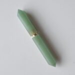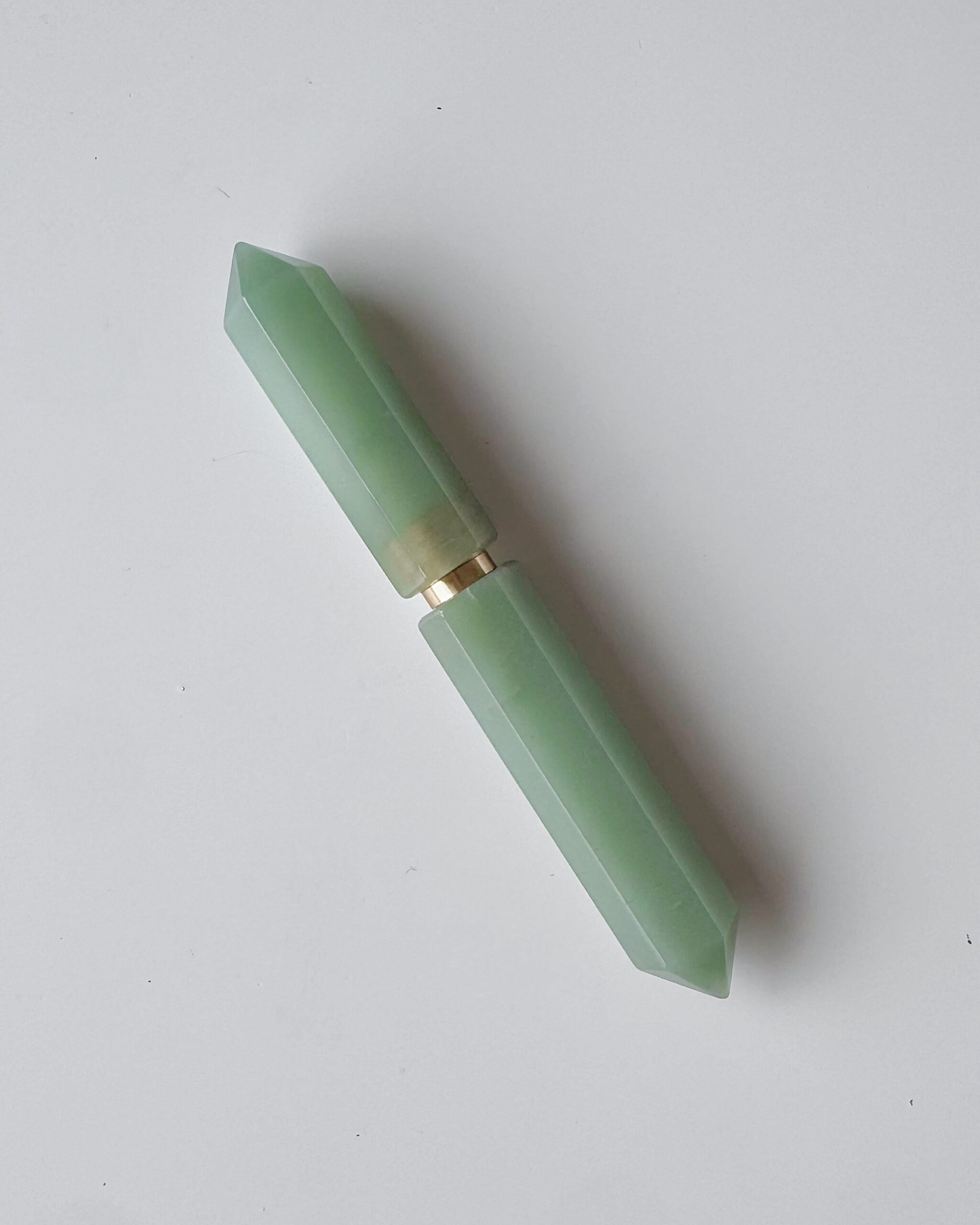 Accesorio para celular pop socket de ágata verde con filo dorado.