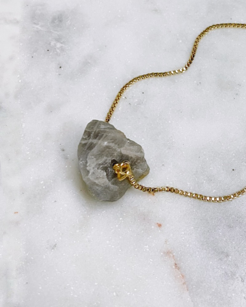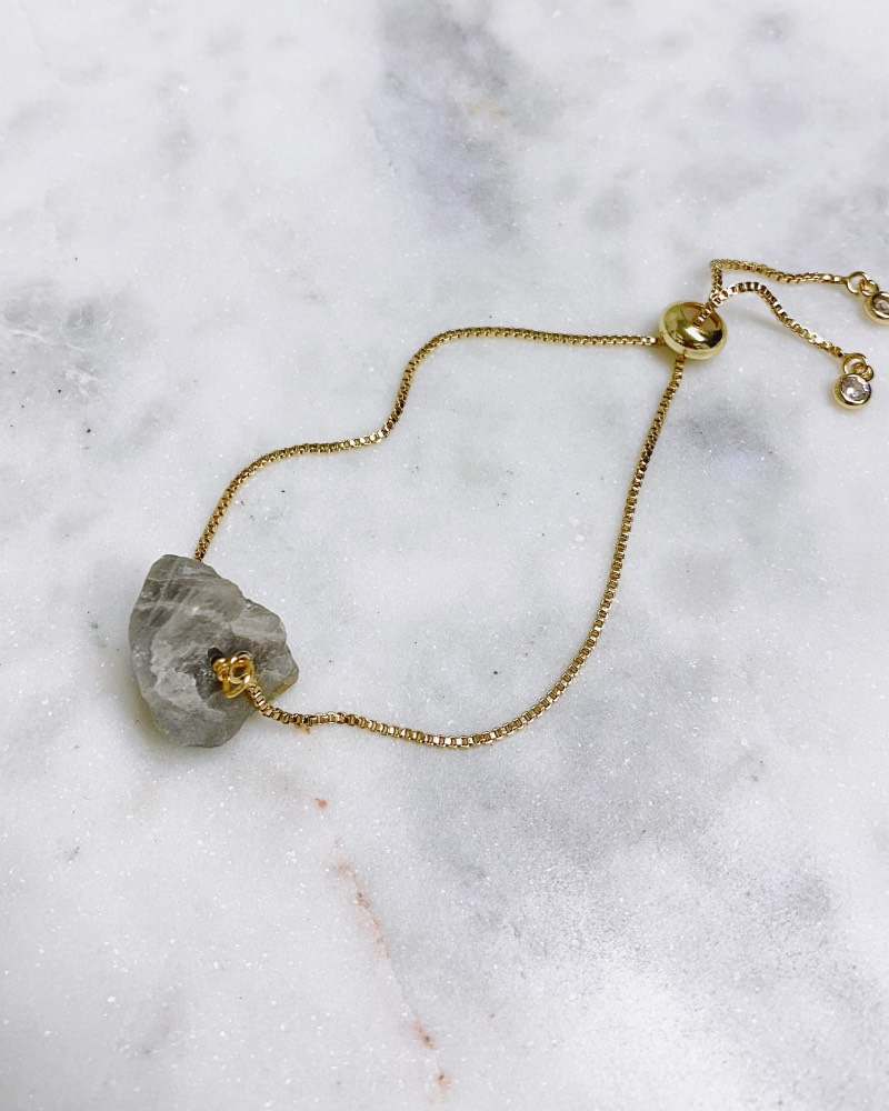 Pulsera de cadena de acero inoxidable con baño de oro y gema en bruto de Labradorita.