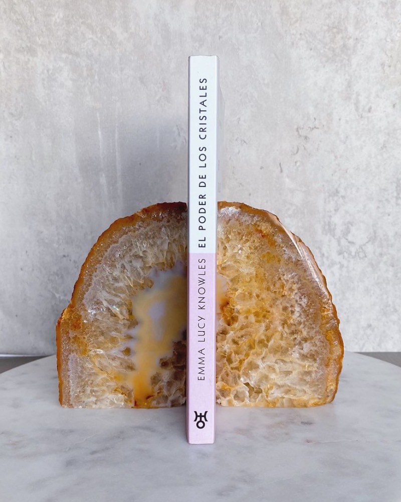 Pisalibros «bookholder» de ágata en tonos cálidos de 11x9cm.