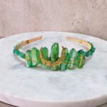 Diadema hecha con piezas de cuarzo aura verde y aventurinas.